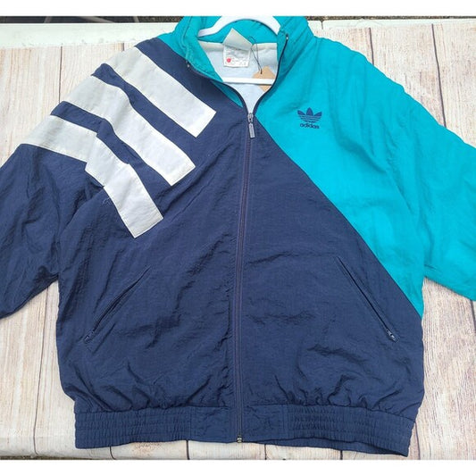 Vtg Adidas Windbreaker Jacket Aqua Colorblock