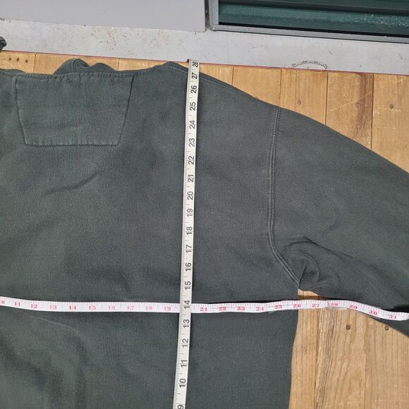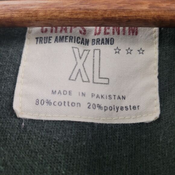 The Vintage Chaps Polo Ralph Lauren Zip Hoodie in olive green is a classic piece for any collector or enthusiast of timeless apparel. Sized XL, it features a light fade that adds character without compromising its overall condition—no holes or stains are present. Measurements taken lying flat show 26 inches pit to pit and 27 inches in length, ensuring a comfortable fit. As with all vintage items, some natural wear is expected, reflecting its authentic history. Please review the detailed photos carefully to appreciate the garment’s unique qualities and confirm its condition before purchase. This hoodie combines heritage style with enduring quality, making it a valuable addition to your wardrobe.